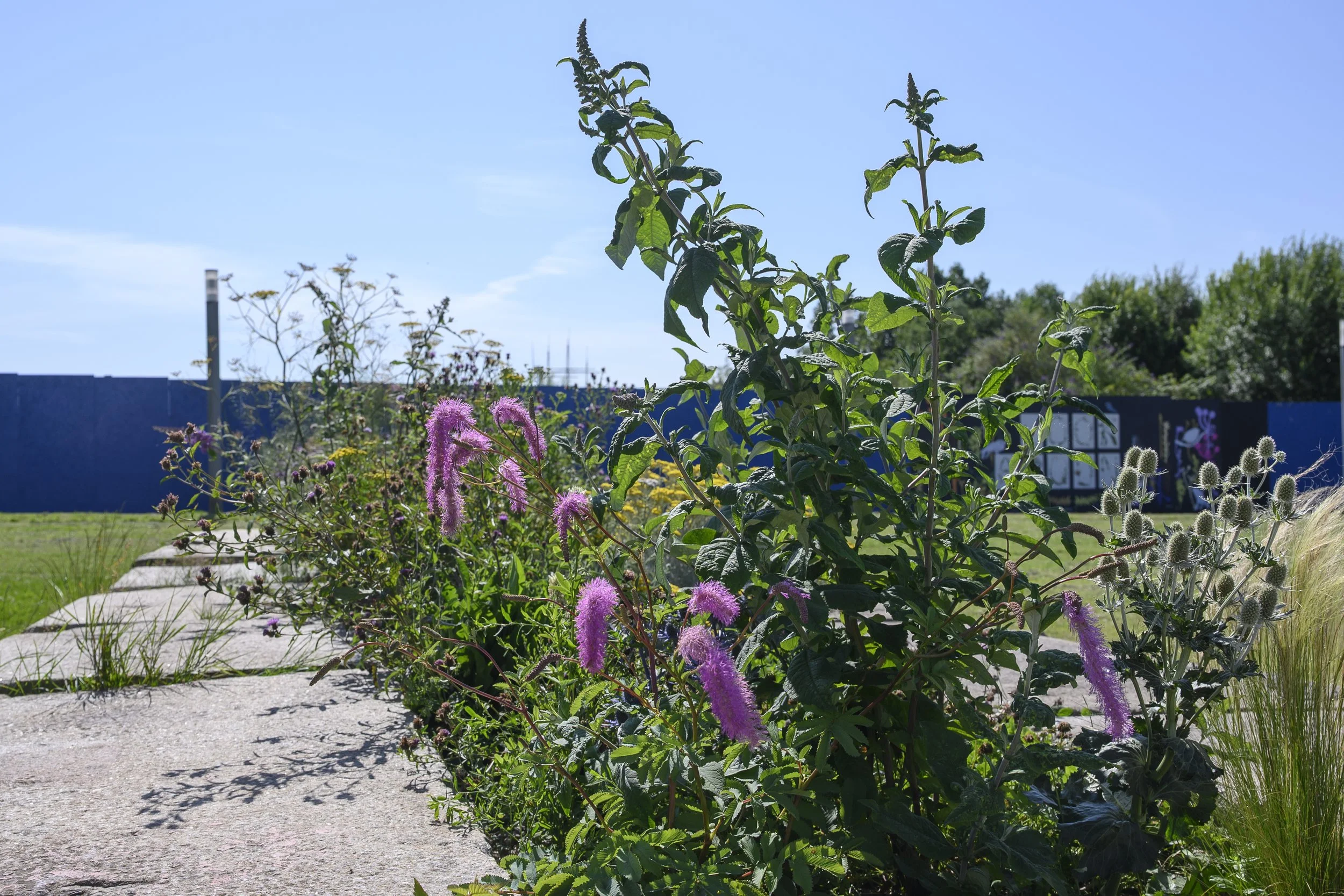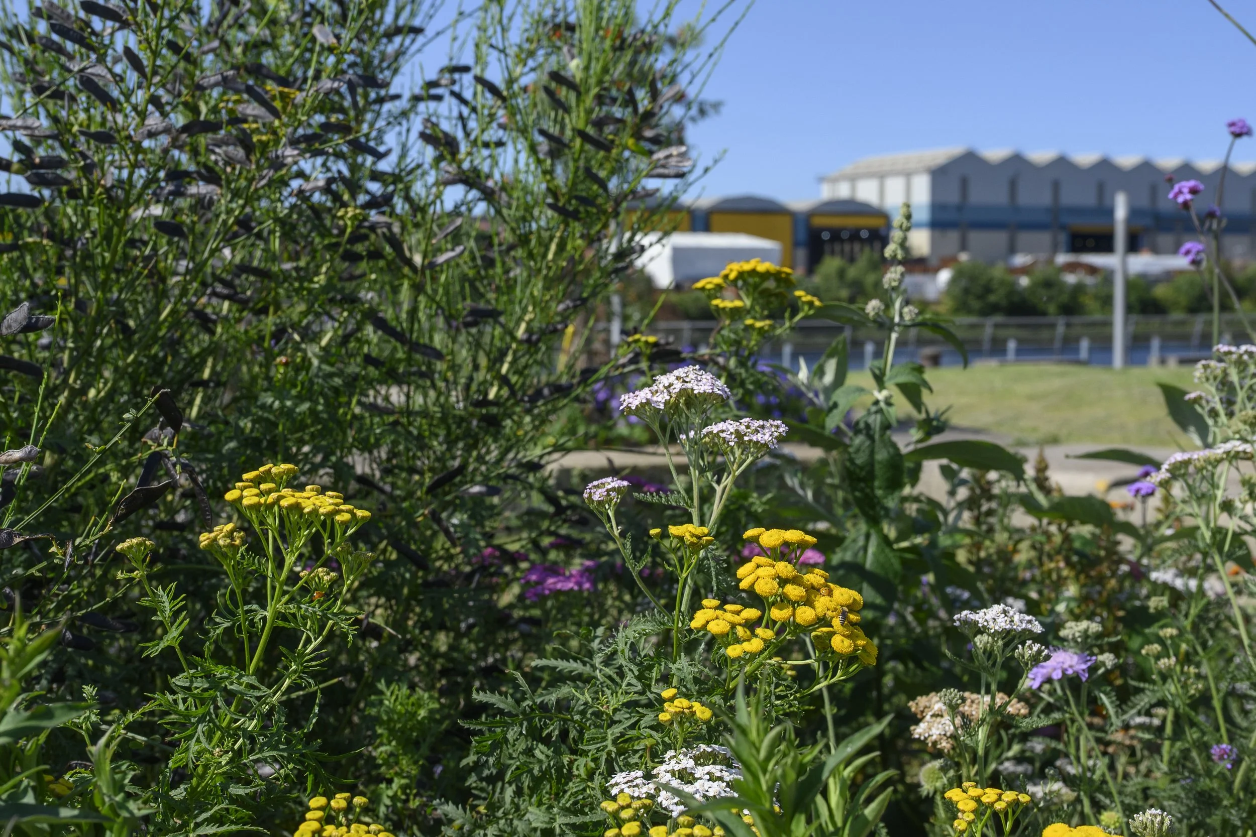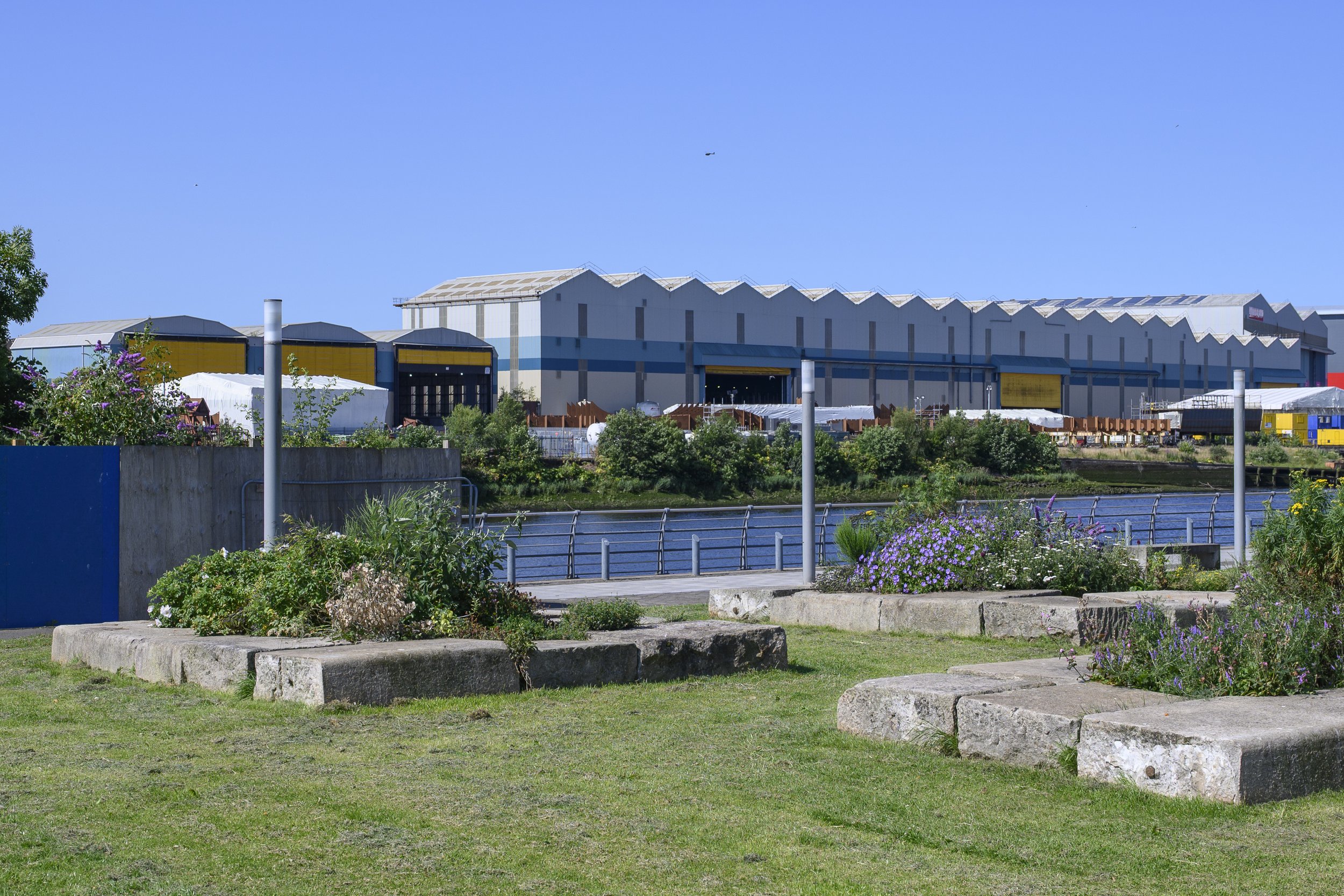 Planting is inspired by the flora and fauna found in the brownfield site where these shipyards used to be, where you will find wild red clover, broom, buddleja, tansy and aster growing and hear the birdsong of willow warblers, whitethroat, greenfinches, and dunnocks.