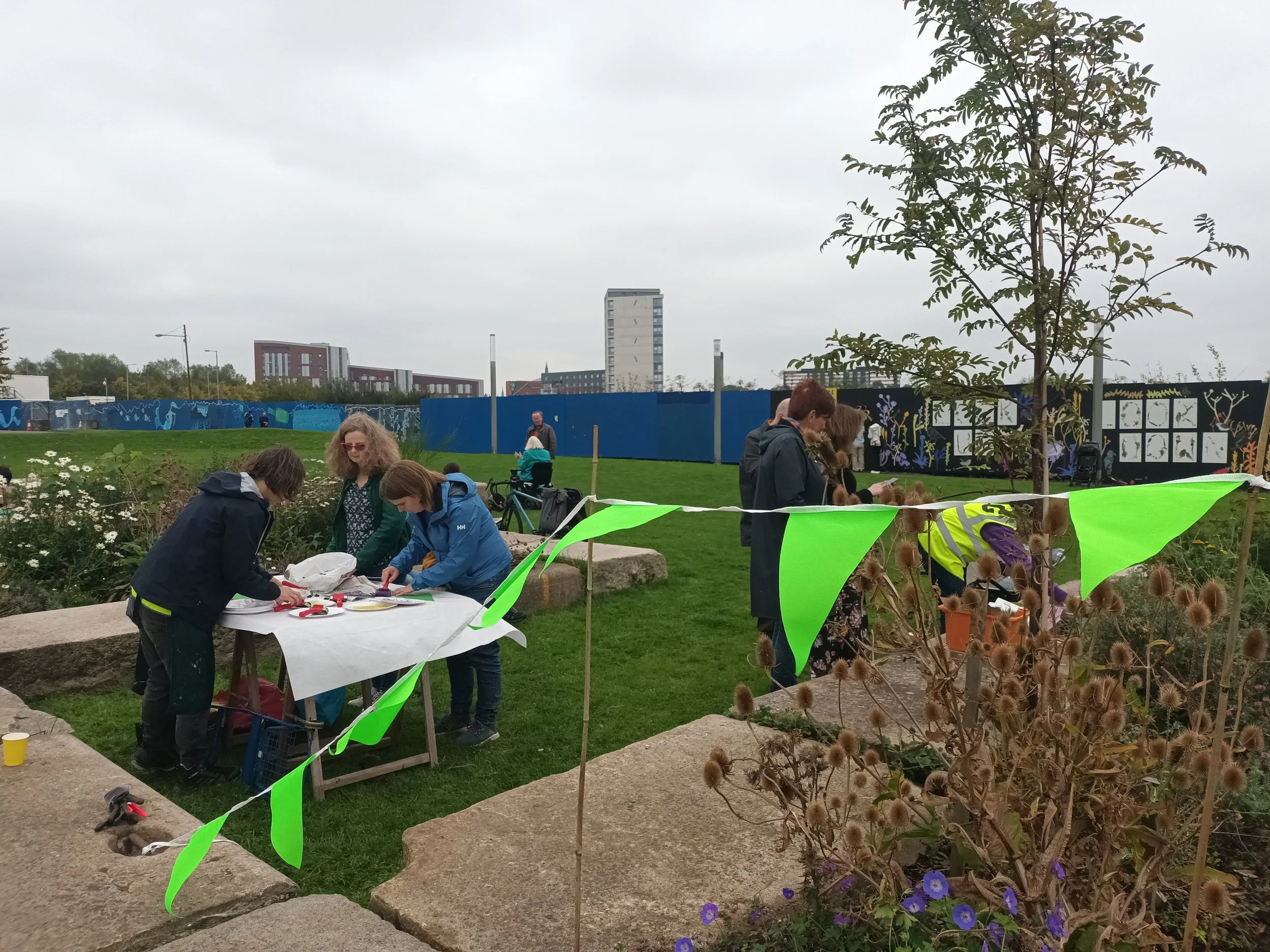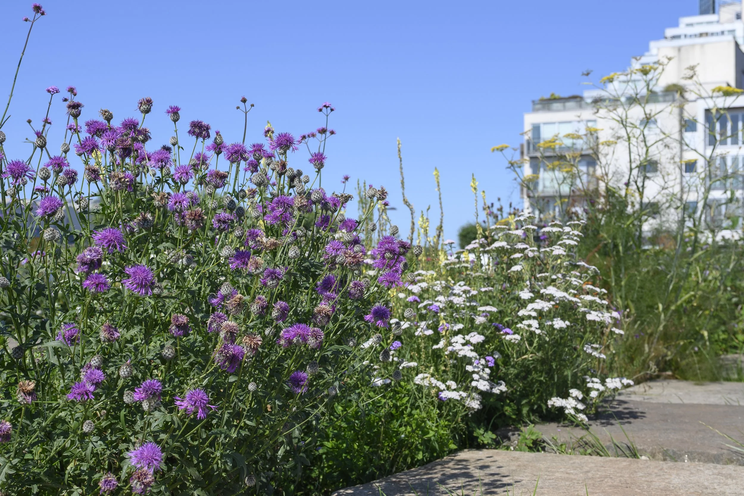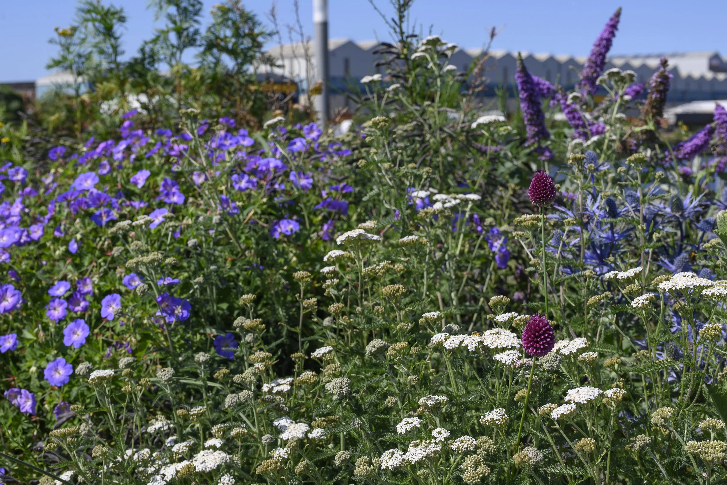 Planting is inspired by the flora and fauna found in the brownfield site where these shipyards used to be, where you will find wild red clover, broom, buddleja, tansy and aster growing and hear the birdsong of willow warblers, whitethroat, greenfinches, and dunnocks.